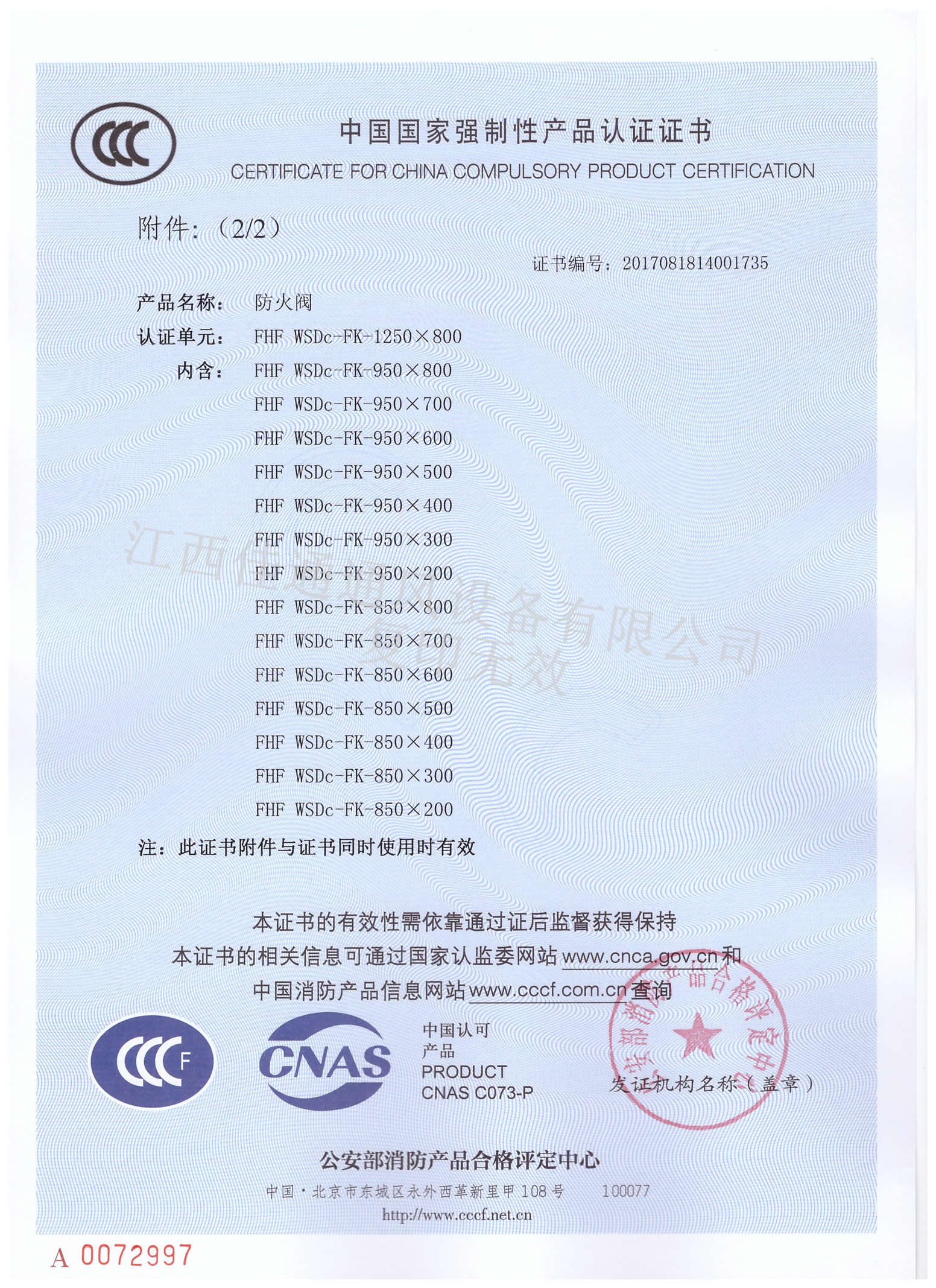 消防3C認(rèn)證證書防火閥1250×800(分型2)