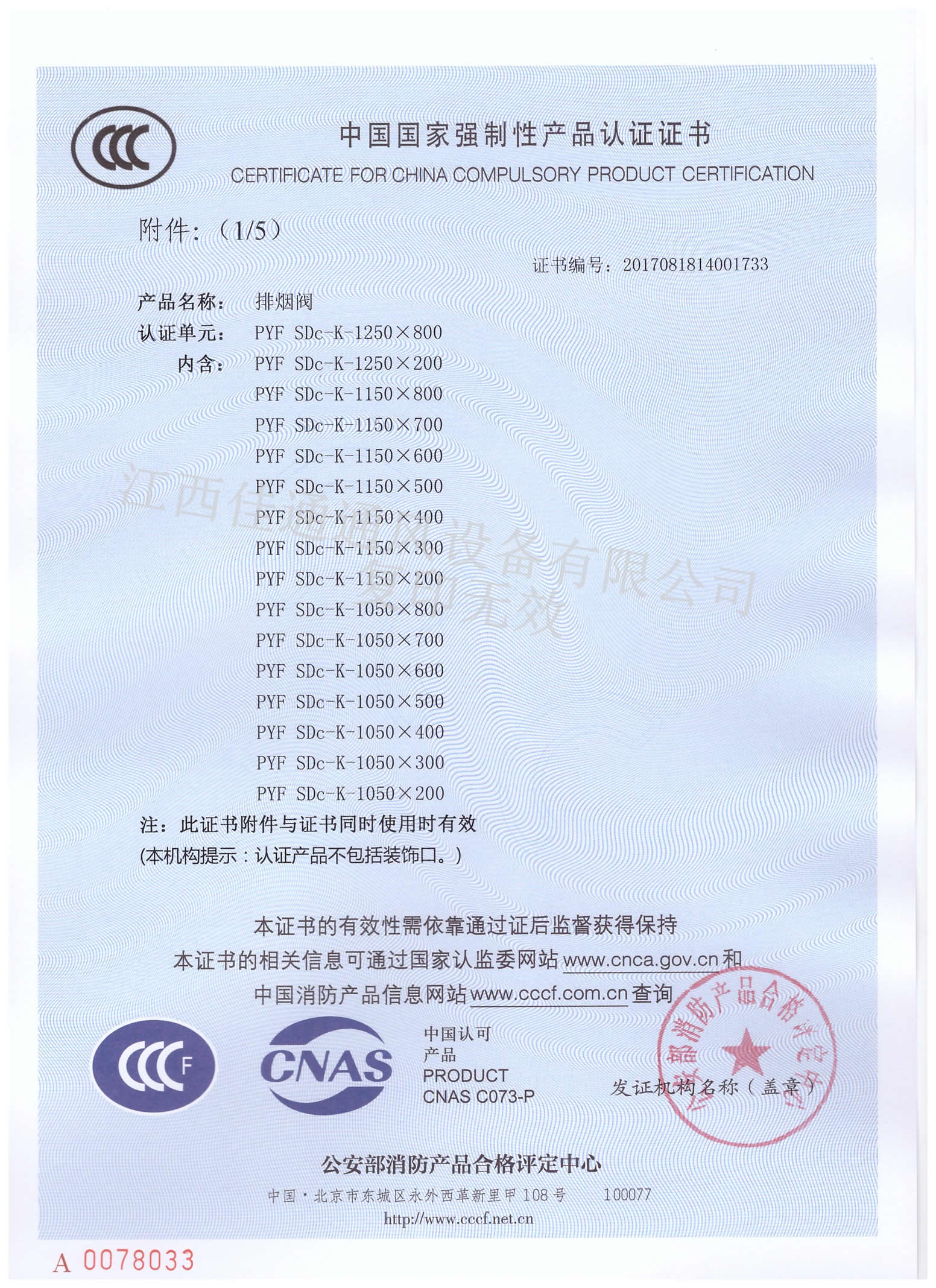 想了解更多請(qǐng)點(diǎn)擊===>>排煙閥3C認(rèn)證證書(shū) 3C排煙閥 排煙閥
