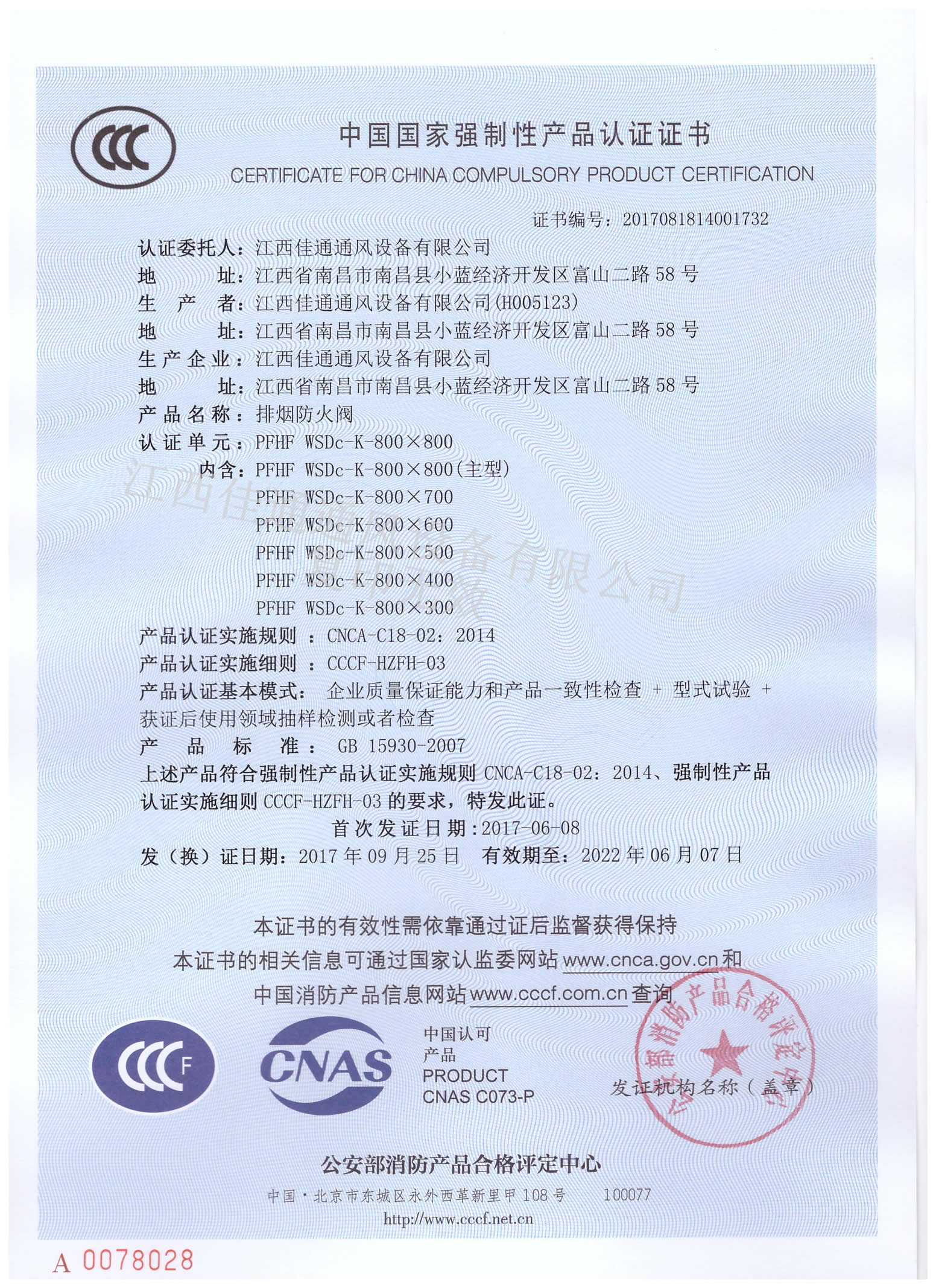想了解更多請點擊===>>排煙防火閥3C認證證書 3C排煙防火閥 排煙防火閥
