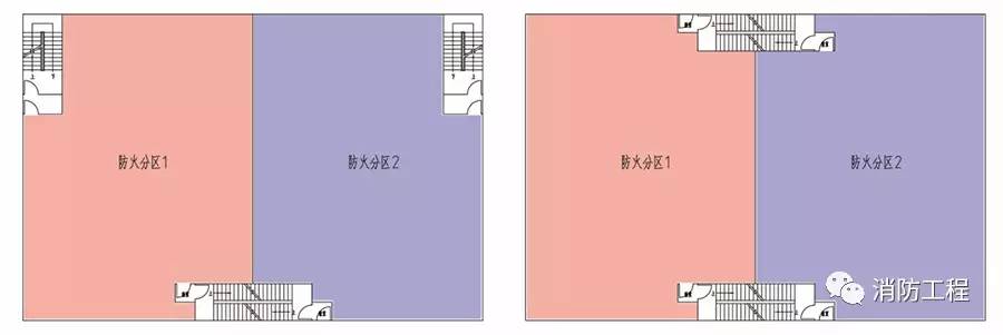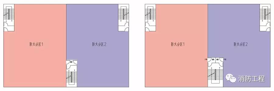 圖4 相鄰防火分區“并梯”形式(存在不確定性)(右)