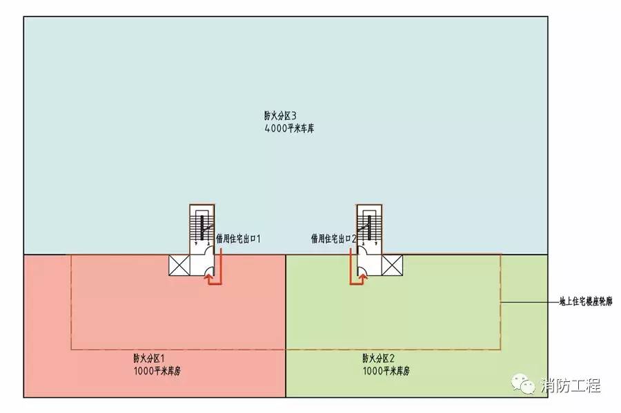 二是地下車庫可以全部借用相鄰住宅防火分區安全出口。