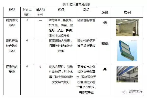 就防火卷簾的分類而言,GB14102-2005《防火卷簾》按耐火極限分為鋼質防火卷簾、無機纖維復合防火卷簾和特級防火卷簾。其中,鋼質防火卷簾、無機纖維復合防火卷簾均屬普通防火卷簾,只能滿足耐火完整性,不能達到耐火隔熱性要求,不能替代防火墻使用。特級防火卷簾則包括蒸發式汽霧防火卷簾、水霧式防火卷簾、雙軌雙簾無機復合防火卷簾, 滿足將背火面溫升作為耐火極限判定條件,可以用做防火分區分隔,代替防火墻。而防火卷簾量大面廣,且卷簾成本差別巨大,因此合理科學的選用卷簾對控制成本投入意義較大。