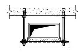 (2)支吊架的固定采用以下幾種方法:①膨脹螺栓法。本方法適用于規(guī)格較小的風(fēng)管支吊架的固定。本工程支吊架固定大多數(shù)采用此法,通過(guò)在樓板、梁柱上打膨脹螺栓固定支吊架。②焊接法。本方法適用于風(fēng)管規(guī)格大,使用膨脹螺栓固定不能滿足強(qiáng)度時(shí),采用預(yù)埋件焊接固定支吊架。支架固定形式見(jiàn)下圖。