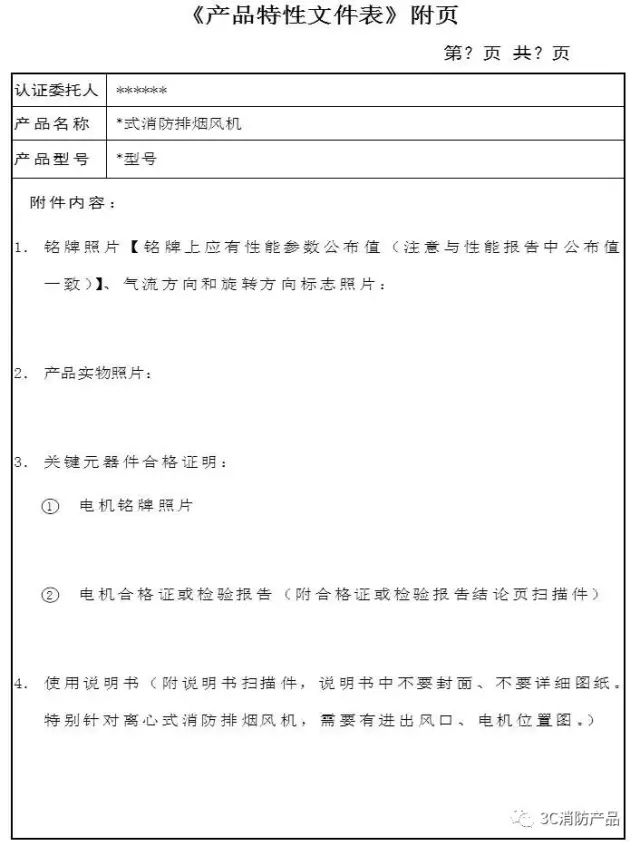7.提供與申報產品型號規格一致的性能試驗報告,性能報告要求見http://www.cncf.com.cn/manage/html/1762.html《關于消防排煙風機3C認證時常規性能檢測報告的要求》。