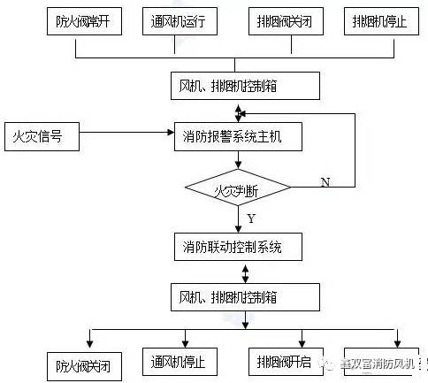 4)防火閥關閉信號,排煙閥開啟信號,通風機和排煙風機運行信號反饋到消防中心。