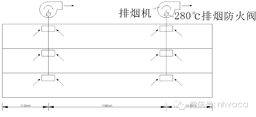 2.防區內任何地點到排煙口水平距離小于30m,如下圖所示。