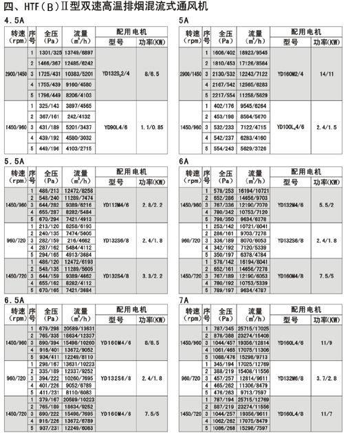 HTF(B)系列(PYHL—14A)高溫排煙低噪聲節(jié)能混流通風(fēng)機是介于軸流式和離心式通風(fēng)機之間的一種新型風(fēng)機,它具有離心式風(fēng)機的高壓力,軸流風(fēng)機的大流量,效率高、節(jié)能好、噪聲低、安裝方便等特點。本系列通風(fēng)機設(shè)計新型、結(jié)構(gòu)緊湊、體積小、重量輕、易安裝、與老型號的離心式風(fēng)機相比可節(jié)電20%,轉(zhuǎn)速小于2000r/min時,噪聲低于75dB(A),風(fēng)機連接管道和安裝在空調(diào)箱時,噪聲小于70dB(A)。可代替200pa以下的中、低壓離心風(fēng)機,廣泛應(yīng)用于工業(yè)、民用建筑通風(fēng)除塵等。PYHL—14A系列風(fēng)機是HTF系列的派生產(chǎn)品,風(fēng)機進風(fēng)端裝有集流消音器,產(chǎn)品能在300℃左右環(huán)境溫度中正常運轉(zhuǎn)1小時,既能作通風(fēng)換氣,又能起高溫排煙等雙重作用,適用于地下隧道、地下商場、地下車庫等消防配套設(shè)施。