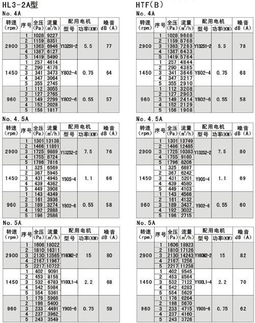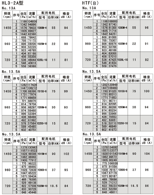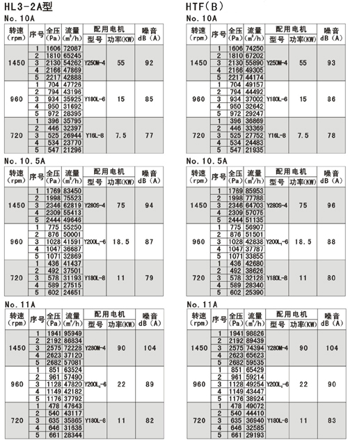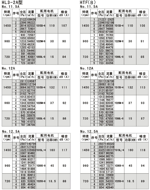 風機的性能可從表上查閱,表中列出的性能是最高效率范圍內的性能,按流量分為五個特點,選用時按性能表為準,出廠的風機合格品性能在額定流量下全壓值不超過±5%。性能選用表是標準狀態下的性能。無論技術文件或定貨要求的性能均按標準狀態為準,標準狀態大氣壓為101325pa,t=20,相對溫度--50%空氣狀態,當實際使用條件下與上述不符合時按有關公式進行換算。風機安裝方式可分為立式和臥式,如立式安裝在訂貨中注明,如流量,壓力安裝尺寸等性能參數有特殊要求時,公司將為您另行設計生產。HTF(PYHL-14A)系列通風機的流量數值為300℃高溫空氣的流量值,比平常選用時HL3—2A系列風機流量值±5%.