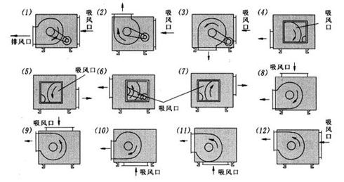 消防高溫排煙低噪聲雙速柜式風機進出風口位置編號表