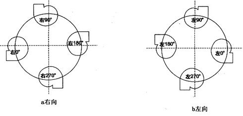 本系列風(fēng)機(jī)分A式直聯(lián)傳動(dòng)和E式皮帶傳動(dòng),按葉輪旋轉(zhuǎn)方向分為左旋和右旋,旋轉(zhuǎn)方向從電機(jī)或皮帶輪側(cè)看為準(zhǔn),以出風(fēng)口分為00、900、1800、2700四種出風(fēng)方式,訂貨時(shí)需注明。